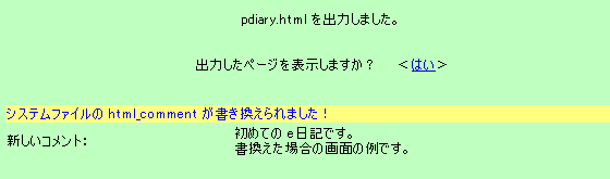 従来の機能では、セットアップ画面に入ってからコメントを修正するようになっていましたので、僅かな手間の改善です。しかし、例えば私のように月ごとにページを変えていく場合など、「○○年○月の日記です」などとコメントを入れておいても、月が変わってもこの部分に気付かずに古いままのコメントが残ってしまう場合があったので、こうしたミスに気付きやすくなったと言う効果のほうが大きいと思います。