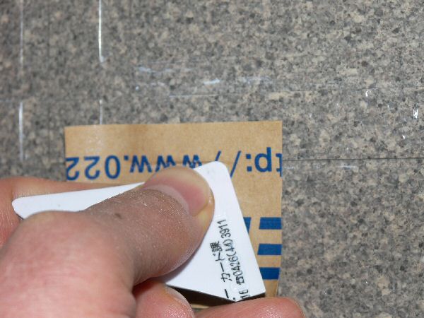 途中からは力を入れすぎたのか爪が欠けてきたので、写真のように使わなくなったプラスチックのカードを切った破片の角で押しつけてから剥がすように変えました。