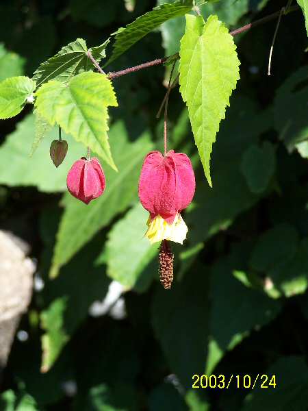 昼飯に近くの蕎麦屋に出かけました。 丁度、午前中にカメラの試写を頼まれましたので、近くの自然保護されている里山で写真でも撮ってこようと、そのカメラを持って出たんですが、蕎麦屋の垣根に珍しい提灯のような花を見つけました。垣根に巻きついた弦状の茎から、提灯のような花とその中から雄しべのようなものが垂れ下がっています。思わずシャッターを切ってしまいました。