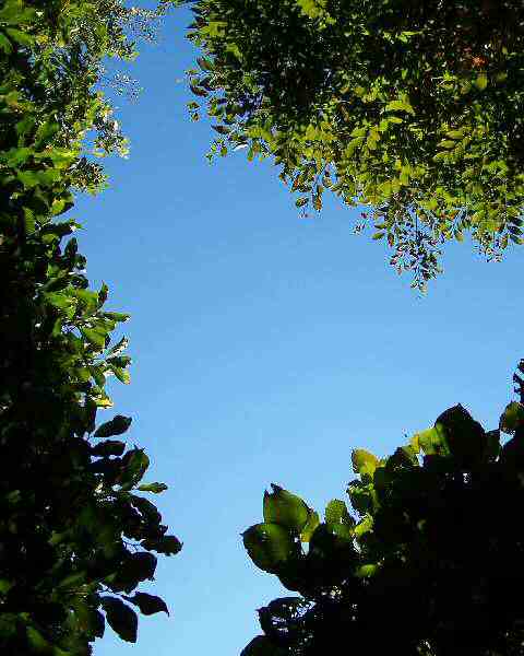 秋の気圧配置が安定したのか、朝から、雲一点ない日本晴れ。 正しくこの時期の空でした。 空を見上げて、紅葉にはまだちょっと早い木々の葉っぱを写して見ました。