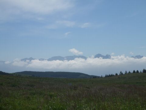 上諏訪温泉に宿泊した後は、霧ヶ峰に上った。 今年は、訪れる季節がちょっと遅かったので、観光客もまばら。高山植物はほとんど花をつけていないし、ススキが穂を出して、早 秋気配。 その一面のススキの原の向こうに八ヶ岳が霞んでいた。