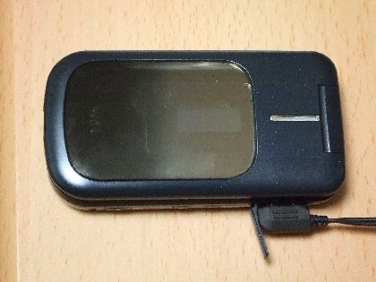 再び、新しい携帯電話の話。 最近のauの携帯はどれもMP3ライクなソリッドオーディオ機能が備わっている。 その4でも書いたとおり、CD何枚かから音楽を取り込んで通勤途中に聞いてみた。音質は想像よりはるかに良かった。iPodよりもかなり重いが、一昔前のウォークマンよりは軽い。携帯音楽プレーヤーとして十分通用すると思った。 しかし、写真のようにイヤホンを挿したときにどうしてもジャックが飛び出してしまう。これは携帯音楽プレーヤーとしては仕方ないことだが、携帯電話として考えるとこのまま持ち歩くと言うことはちょっとあり得ない。で、会社に着くとジャックを抜いてカバンに入れておく。毎日このジャックの挿抜を繰り返すのかと考えると、やはり専用の音楽プレーヤーを欲しくなる。 ここまで小さく、機能も性能も満足できるのに、ここでも書いたが専用製品に対する万能製品の限界を再び思い知った。