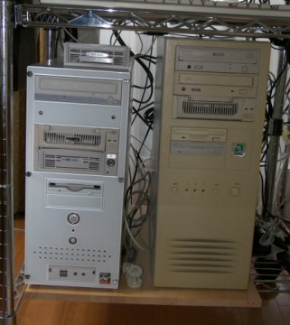 すっかり記入から遠のいてしまった。というのも、お役立ちのページに掲載した XpでPC交換した場合の Outlook Expressの移行手順で友人がメール環境を移行させたモノの、受信はできるけれど送信ができないと言ってきた。 その対応と、その前に購入時の相談を受けてDELLやら eXComputer e-Machinesなどのページを見ている内、自分でも新しいPCが欲しくなってしまい、とうとう新しいPCを買ってしまったため、このページに記入する時間がとれなくなってしまった。 現在、家で使用しているマシンは写真の通りフルタワーの Athlon 1GHz機(右:Windows-Xp) と 常用のAthlon 64(左:Windows-2000)だが、右側のマシンは処理速度でそれほど不満に思ったことはないが、USBが1.1で遅く、それも2Portしかない。DVD/CD Driveも使えなくなったので、そろそろ潮時かな?ということで、いよいよ Windows Vista搭載用のPCを購入することにした。