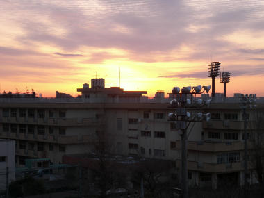 正月が済んだ・・・・と言っても、通勤しているわけではないので正月も普段もそれほど変わらないが、ウィークデーは娘を駅まで車で送る仕事だけが増える。 その後、外に出たついでに 3~4Kmのウォーキング~時々ジョギング。最近はスロージョギングと名前がついたようだが。身体はすぐに温まるが手と顔が冷たい。今朝の気温は 最低時より 2~3℃高めで車の車外温度計で 1℃。風も強くはなかったが結構寒く感じた。 記憶では、子供の頃 7日の朝は「どんど焼き」が行われた。田んぼの真中に暮れのうちに藁の上に青竹や松、杉の枝を積み上げて、6日に各家々から回収した松飾りなどの正月飾りを加えて日の出頃に日をつけて燃やした。その火でモチを焼いて食べたり、その火の付いた枝を家に持ち帰りその火で七草粥を炊いて食べたような記憶がある。多分古い記憶なのでどれかは違っているかもしれないが。 この辺りではそうした風習がなさそうで(昔はあったにしても時節柄、既にやめた可能性も高いが)、正月飾りの処置に困る。近くに神社もないし毎年悩んだ末に結局は買い物袋に入れて燃えるゴミとして出すんだが。 写真は今朝の朝焼け。恐らく今朝は毎年気になる一年のうちで日の出時間の最も遅い日になると思われるが、残念ながら十分日の出時刻を過ぎても薄雲で正確な日の出時刻は確認はできなかった。