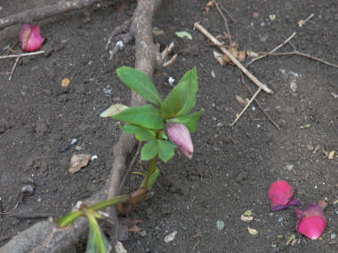 昨日からかなり温度が高い。 昨夜、久しぶりに家族で焼肉店でたらふく焼肉を食べたんだが、かなり食べ過ぎた。寝るときに腹が苦しかったので、自作の足踏み器で足踏みをして寝たんだが、朝起きるとまだ胃がもたれている。最近はこんなにもたれることも珍しいので、9時頃に起きて日曜日にしては珍しく散歩に出た。いつもと同じ服装で歩き始めたらすぐに汗ばんできた。セーターになって手袋も外して歩いたが、日の当たる所では寒さは全く感じなかった。 もしかしてと思って、例年クリスマスローズの咲く場所を見てみると蕾が一つ。昨年は 3月初めに咲いていたが、今年も同じくらいに咲くんだろうか?
