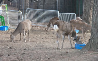 娘に呼ばれて長野県へ。 首都圏は随分と暖かかったが、長野だからと用心して冬のままの服装で・・・セーターの上にダウンのジャケットを着て。 ところが着いてみて驚いた。ほとんど気温が変わらない。20℃近くある。ダウンのジャケットは暑くて着ていられない。車は窓を開けて走ってちょうどいい。ところどころ建物の北側に雪が残っているのと梅が咲いていないのが何か不思議な感じすらする。 わずか2週間前には神奈川でも凍えるような寒さの日があり「今年の冬は特別寒い。梅もまだ咲かない」と話していたのが信じられない。昔、子供のころに大人がこうした天気の日には「今日はバカ陽気だ」と言っていたことを思い出す。 今日の写真は、フキノトウを取りに出かけた近くの大学の実験林の中に飼われていたシカ。