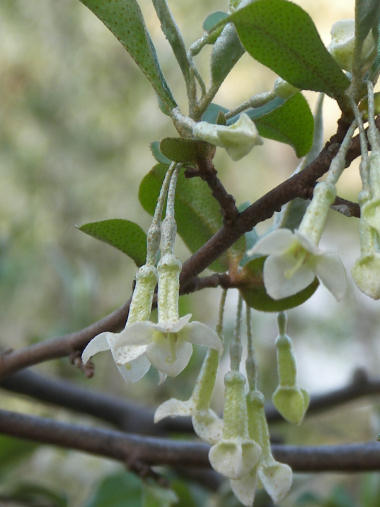 ちょっと古くなるが、日曜日の朝日新聞朝刊一面トップ記事は「腰痛 2800万人」だった。よほどニュースがなかったのかも知れないが、腰痛持ちとしてはつい見入ってしまった。中見出しでも「40~60代は4割悩み」「8割原因不明・・・心の悲鳴かも」というもので、ほぼ内容は推察できてしまうが、厚生労働省研究班が患者数を推計し、関係学会が論文から一般的な治療法ごとのお勧め度をまとめたというもので、一番のお勧めは抗炎症薬や鎮痛薬だそうだ。逆にマッサージや牽引はあまり効果がはっきりしないらしい。 まぁ、実体験からするとマッサージはどこでもいいという訳ではないので納得の結論だな、という感じ。それと、安静よりも運動したほうがいいというのも私の経験と一致する。ただ、私の経験ではベッドなどの寝具と寝相がかなり影響すると思うが、そうした情報はなかった。少なくとも私の場合、直近の2回は明らかに左を下にして長時間寝た場合に翌日の朝、腰痛が発症する。 期待して読んだ割には、「体育の日でもないのに、これが一面トップ記事か?」というやや肩透かしを食らった感じではあった。記事の全てが学会や研究班の公表データだったが、せめて手術などのすぐには受けられない治療の効果割合などを独自に深堀りして乗せて欲しかった。 今日の写真は、長さが1cmにも満たない小さな花が、樹高 3mほどの木にびっしりぶら下がっている。小さな花で遠くから見ると花が咲いているとは気付かないくらい。冬になって葉っぱを落としてしまった木ではどんな葉っぱが付いていた木か覚えていないし、まして実なんて全く覚えていないので花を見ても何という木か分からない。気になったので帰ってから Webで調べると花の形から「グミ」の木らしい。そう言えば去年の夏にそれらしい実がなっていたような気もする。今年は実がなるのを注意していよう。
