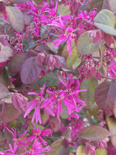 絵に描いたような「春の嵐」が過ぎ去った。この辺りも昨夜はかなりな大雨が降り道路は至る所冠水し、今朝は早朝から一日中暴風が吹きまくっていた。夕方になってやっと風も落ち着いたようだ。 昨夜はベランダの鉢にやっと咲いたチューリップのクビが折れるのを心配して、ベランダの隅っこの吹き溜まりに移動させておいたのが幸いして、今朝一番で見てみたが何とかチューリップは生き延びたようだ。明日の朝の散歩では、至る所新しい花が咲いていそうで楽しみだ。 今日の写真は昨日掲載のベニハナトキワマンサクと同種で色違い、白いひも状の花弁の「トキワマンサク」だと思うが自信はない。同じ種類とは思えないほど、コチラは何とも地味な感じの花だ。 | |
