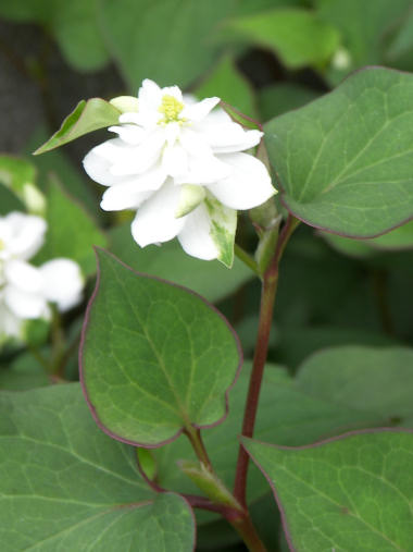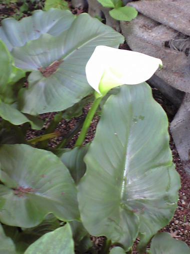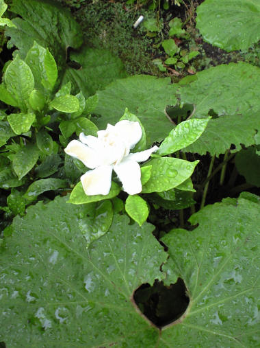 花は綺麗だし、見方によっては真っ白な花びら(実際には総苞片という部分らしいが)にすっくと淡い黄色の集合花がそびえた様は高貴な感じすらする一番身近な薬草なのに、名前のせいか ありふれた草花のせいか、それとも匂いのせいだろうか あまり人気がない花だ。日陰の薄暗くジメッとした所を好んで咲くからかもしれない。花の真ん中の棒状の花序という部分が実際には小さな花の集合で、密集した個々の花は黄色の雄しべと雌しべだけがあるということらしい。 子供の頃に、切り傷ができたりすると血止め?消毒?として生の葉っぱを揉んで傷口に付けた記憶があるが、あの頃は「おまじないかな?」くらいにしか考えなかったが、思い出してもその後傷が化膿したりした記憶はないから、実際効いていたのかもしれない。漢方薬としても利尿作用、動脈硬化の予防作用があるというから、味さえうまくごまかせれば飲んでみたいものだ。 | |