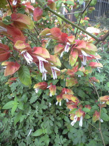 今日は高校の同窓会があって、市ヶ谷のアルカディア(私学会館)に出かけた。例年は首都圏地区は全体総会とは別に首都圏支部の同窓会が行われるが、今年は初めての試みとして東京で全体総会が開かれ、故郷からバスも出たということで大挙して同窓生が出席していた。しかし我々の同年生は私以外も冷めた年次だったのか 10人弱しか出席しておらず、しかもクラスが 9クラスあったこともあり同じクラスの人はだれも出席していなかった。名前は覚えあるが、顔は全く思い出せない同年生 2~3人と何とか話をしていたが、不思議なもので 話をしているうちに「そう言えば」と雰囲気を思い出した。昼間からの飲酒でかなり疲れて帰宅。 今日の写真は全く名前に見当の付かない花。花びら(花苞?)の色がここまで複雑だと、Webで検索するにしてもどう検索していいのか分からず当惑のままアップしておく。(後日判明:コエビソウ) | |