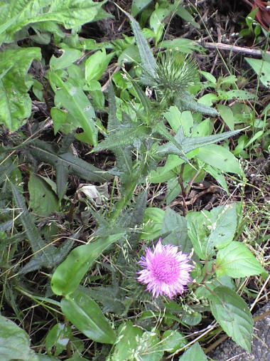 そうした中、問題解決のための相手会社の事業部トップとの待ったなしの交渉や、社内の役員レベルの人からの「親切な」アドバイスへの対応なども毎日のように勃発する中で、今でもあの時は何故こんなに複雑なシステムの初めての開発を「無謀な」日程通りに進められたのか、もしかしたらあのパーティの夜の「よろしく頼む」という一言で催眠術にでもかかって夢を見させられていたのではないだろうか? キツネでも乗り移っていたのではないだろうか? と、自分でも不思議でならない。 今日の写真は、ノアザミの花。雑草は早めに刈られてしまうこの辺りで見ることは珍しいが、草丈が数cmと低いことが幸いしたのか、一輪だけ咲いているのを見つけた。栽培種よりも雑草を見ると心が和むのは、生き方のなせるワザ? | |