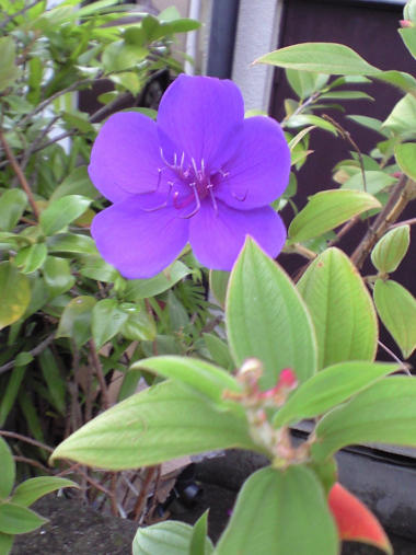 写真はシコンノボタンという花らしい。濃い紫色といい、直径 5cm近いおおぶりな花といい、目立つ花だ。散歩途中の民家の庭の塀から外に顔を出していたのでちょっと失敬して。