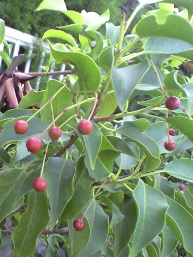 今日の写真はネズミモチだろうか?葉っぱの陰に赤っぽい実がなっていた。