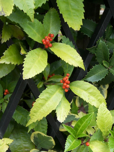 今日の写真は、色づいたソヨゴの実。直径 2~3mmの小さな実だ。