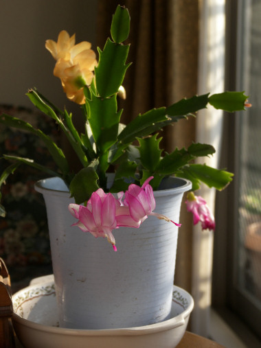 今日の写真は、居間で咲き始めたシャコバサボテンの花。去年買った鉢が、今年は見事に花をつけた。