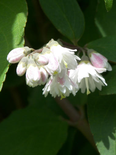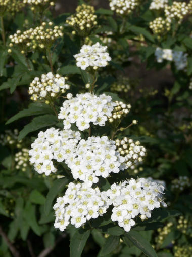 今日の写真はコデマリ。1週間ほど前から開き始めたが一輪ずつの花は小さいので、咲き始めは殆ど目立たない。丸い花の房が一通り開いて初めて開花に気付くような控え目な花。 | |