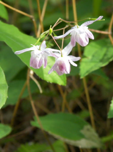 今日の写真: イカリソウ(だと思う)。 藤野の家の庭に盛んに咲いていた。真っ白な花と、この写真のように若干ピンクがかった花がある。 | |