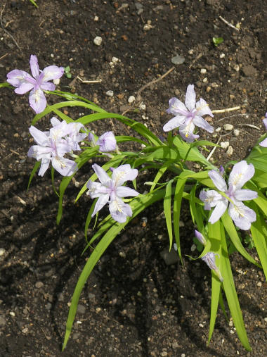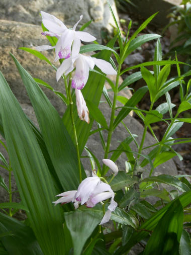 写真は、そうした思い出の一つ。藤野の家の庭に咲いていた白いシランの花。紫の花はよく見るが、この色は珍しいと思う。これにも何か思い出があるらしい。 | |