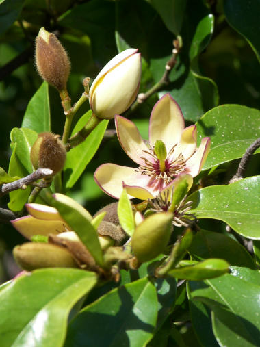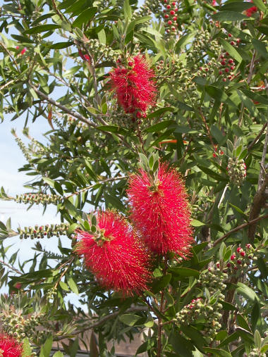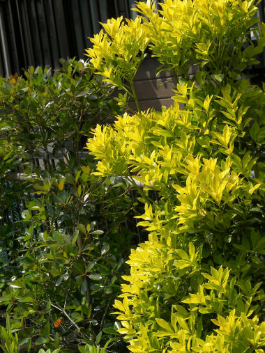 1か月以上前からだと思うが、散歩道と私有地の境にベニカナメのような葉や樹形の木があって、その若葉が鮮やかな黄色~黄緑色になっているのが気になった。ベニカナメに似ているので「カナメ」などで検索するんだが、近い種で赤い葉っぱは出てくるものの、黄色いという説明がある木の種類はなさそう。気になったので何度かシツコク検索していてやっと見つけた。 どうやら「オウゴンマサキ」という名前で、カナメの仲間ではなくマサキの種類らしい。分かった時は技術問題の原因究明と同じようにかなりすっきりした気分になった。写真の向こう側に見えるのがベニカナメだと思うが、もう今の季節 若葉は赤くない。 | |