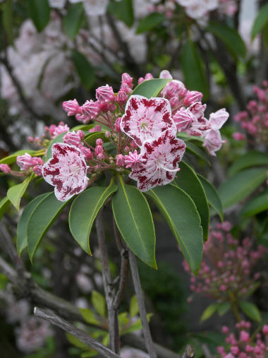写真だけ。 ミツバツツジが咲き始めた。白いユキヤナギの花をバックに、透き通ったような紫ピンクの花のコントラストが奇麗だった。 今日開花に気付いた花は、タンポポ、ポピー、ハナズオウ、カジイチゴ。 | |