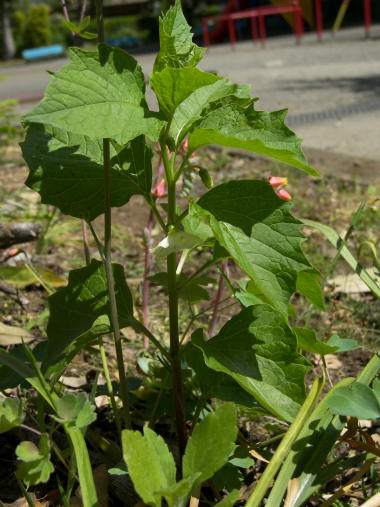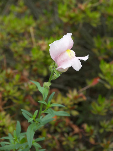 1週間ほど前になるが、サツキの株の間から伸びた茎に写真の花が咲いていた。珍しい形の花で名前が分からず、2日ほどWebを探しまわった結果、キンギョソウらしいと気付いた。キンギョソウというと 塔のように咲く集合花(或いは登り藤)を思い浮かべるので、この1輪だけの花を見てもトント名前が思い浮かばなかった。花の大きさも 3Cmくらいあってキンギョソウの花の一つとしては破格に大きかったが、そうと分かって思い出すと、去年この辺りに典型的な塔型のキンギョソウが咲いていたようなおぼろげな記憶がある。Webも改めて画像検索すると 茎の先に1輪~2輪だけ咲いている画像も結構ある。栄養のせいか? 時期が早いのか? と考えつつ、珍しくポップスの歌詞なんか思い出してしまった。・・・・ SMAPの「世界に一つだけの花」の最後・・・・名前で型にはめて思い込んでいた自分を戒めた。 | |