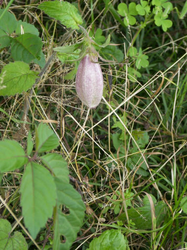 数日前にハギの花が咲いており「もう!?」とアップしたが、今度はキキョウの花。民家の塀の上に置いた鉢植えに咲いていたのを失礼して撮影。桔梗と言えば 秋の七草で月遅れのお盆に仏壇に供える花と言うイメージが強いが、鉢植えだから室内に置いていたのかも知れないがもう咲くんだ! | |