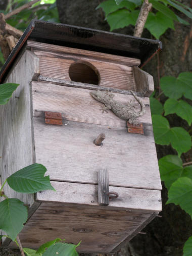 樹木の小さな白い花の続きで、今日の花はたぶん<ガマズミ>の仲間だと思う。代表的な広葉樹の低背雑木だろう。2週間ほど前から葉っぱの間に白い花の房が見え出したが、ここ数日は木全体が白く見えるくらいになった。そう言えば、林道や高速道路で山の際を走っていると、山肌が所々白く見えることがあるが、多分こういった樹木の花が咲いているんだろう。 話は変わるが、数日見かけなかったが 今朝再びこの下の方 #1100で写真をアップしたヤモリが同じ鳥の巣箱の表面にじっと張り付いていた。数日見かけなかったから鳥にでも食われたか?と思っていたが、そうではなかったらしい。何となくホッとした。 | |