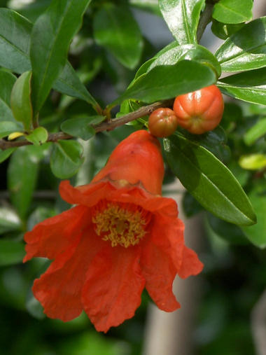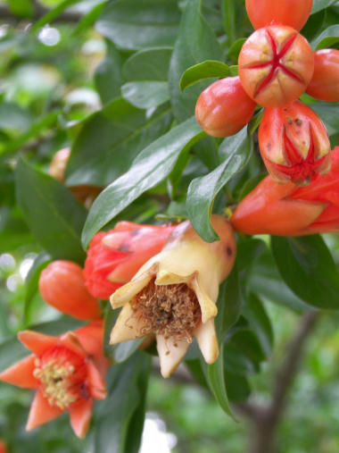 今日の写真は、先日アップしたザクロの花のその後。花弁が落花して間もなく果実が実るんだろうか? ガクの色が変わってきた。 | |