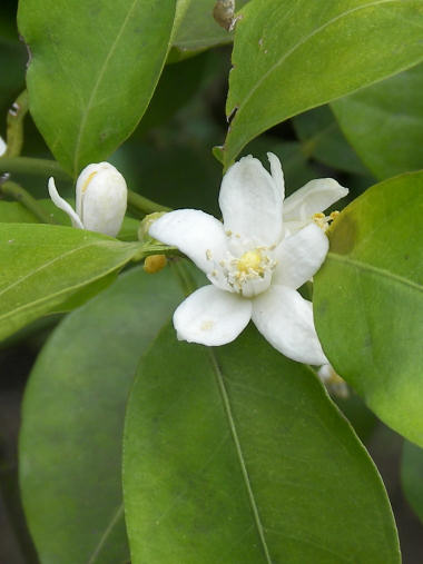 今日の写真はミカンの花。もしかしたらこの木に実っていたのは夏ミカンだったかもしれないが。 | |