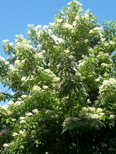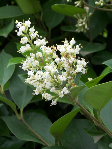 今朝は生憎雨で散歩はできなかったので今日の写真は、数日前の撮影。ネズミモチの花だと思う。今の季節は、こうした細かな白い花を付ける樹木が多い。 | |