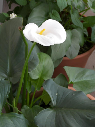 写真はベランダで咲いた、4輪目のカラー。工事で避難していた場所が生育に適していたのか今年は大豊作!? | |