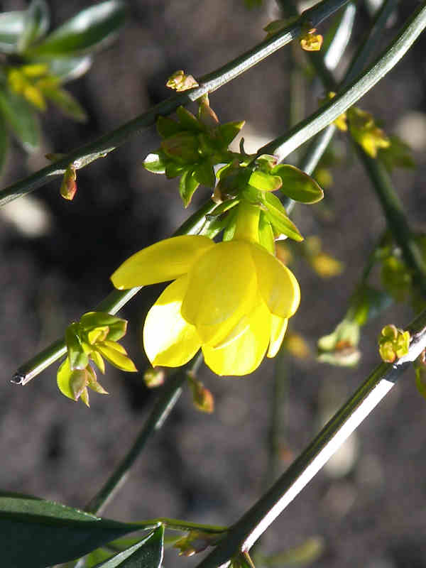 ウンナンオウバイ。 冬中咲いている株もあるが、ここに植えられた株はどれも冬の間は一輪も花はなく2日ほど前にやっと一輪花を開いた。幼木だからまだ樹勢が足りないのか?