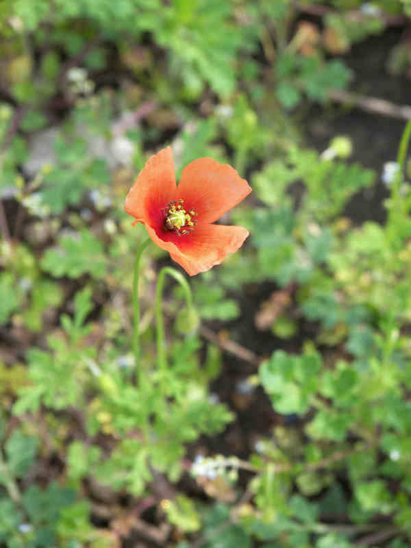 ヒナゲシの花。 空き地のアチコチに10日ほど前から咲き始めた。 昔 ポップスの歌詞を聞いて実物を知らなかった頃、名前からしてもっと可憐な色を想像していたが空き地などで目にするのは殆どこの色だ。(アグネス・チャンの歌い方でそうした勝手な妄想?を抱いてしまった?)白やピンクもあるらしいが見た記憶はない。この色が優生で他の色との交配ではこの色になってしまうとか、他の色は病気などに弱く雑草地では育たないんだろうか? 「虞や虞や汝を如何せん」という伝説の別名の虞美人草の方がこの色はマッチする? |