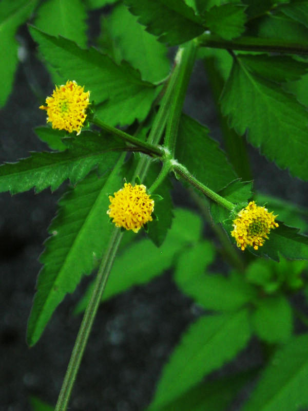 これも娘の家の庭に咲いていた花だが、こっちは雑草。背丈が 1m以上になる大型の雑草で繁殖力が強いらしく、毎年縁石付近にはびこっている。しかし、花は身に相応しくない小さな花が咲く。 Webで検索するとガンクビソウという雑草かもしれない。昔 タバコを吸ったキセルの雁首のような形で、茎から花が曲がって咲くことからそう名前がついたとか。 それほど花が曲がって付いているとは思えないし、名前に自信はない。