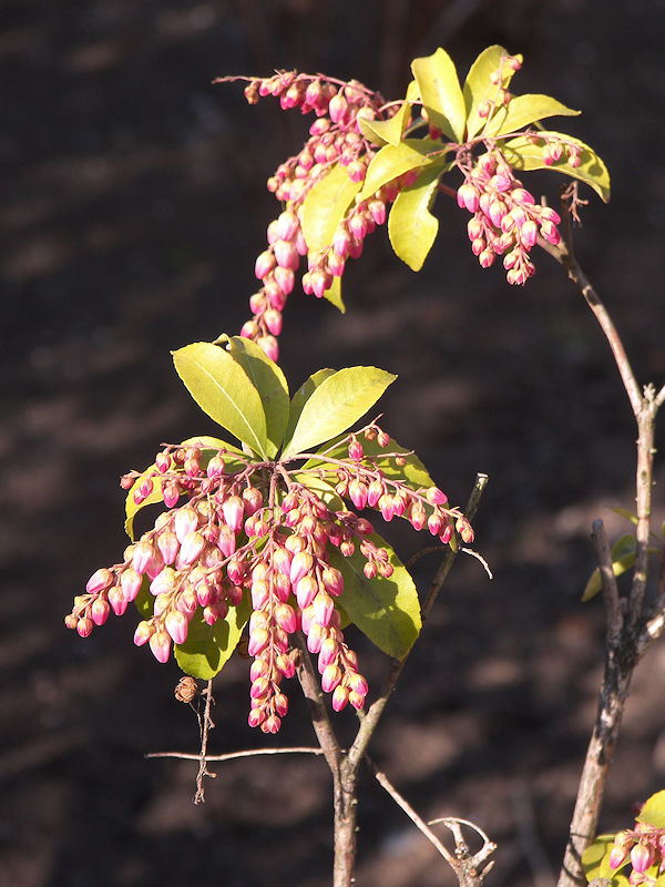 強烈な春一番が吹いた。ベランダの鉢植えは転がり、スリッパは隅っこに吹き寄せられてしまった。そんな気候を察してか、アセビが開花した。先っぽは開いていないかも知れないが、一応開花したと言っても良い状態だ。
