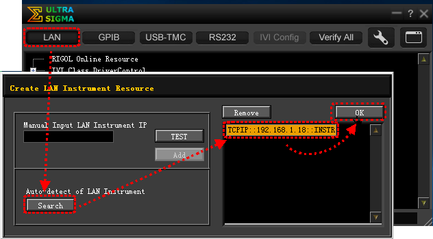 このe日記の記事の件数が 2200件のキリ番を超えた・・・ということはどうでもいいが、またまた唐突な話題。 最近、趣味の電子工作(簡単な)にハマって老眼を瞬かせつつ何年かぶりにハンダコテなどを持ち出している。まぁ私にとって中学生時代以降電子工作は最大の趣味で、考えてみれば現役時代の仕事もその延長だったから、電子工作は生涯の趣味と言えるだろう。 それが 2年前まで関わった仕事の関連で結構な機能のデジタルオシロを入手した。現役時代に当時ハシリのデジタルオシロを率先して職場に導入したもの(3百万円以上!)と比べると 価格は数十分の1ながら かなり高機能で、浦島太郎はタマの使用では使いこなすのに苦労している。 今回は取得波形データの PCへの取り込み方法のメモ。 対象のRigolデジタルオシロは記録した波形データをPCに取り込む方法として USBメモリ経由・USBケーブル・LAN経由などがあるが、最初はデータ移行が明快な FAT32でフォーマットした USBメモリで取り込んでいた。しかし、オフラインよりオンラインのほうが扱いがいいことは自明。そこで LAN経由で取り込んでみたらこれが意外と簡便で扱いやすかったのでメモ。 まず Rigolの背面の LANコネクタに PCと同じルーターから LANケーブルをつないでアプリを立ち上げたら、アプリの LANボタンをクリックする。 「Create LAN Instrument Resorce」ウインドウがポップアップするので「Search」ボタンをクリック。 2~3秒で右ペインに デジタルオシロのローカルIPアドレスが表示されるのでそこをクリックして、右上の「OK」ボタンをクリックする。