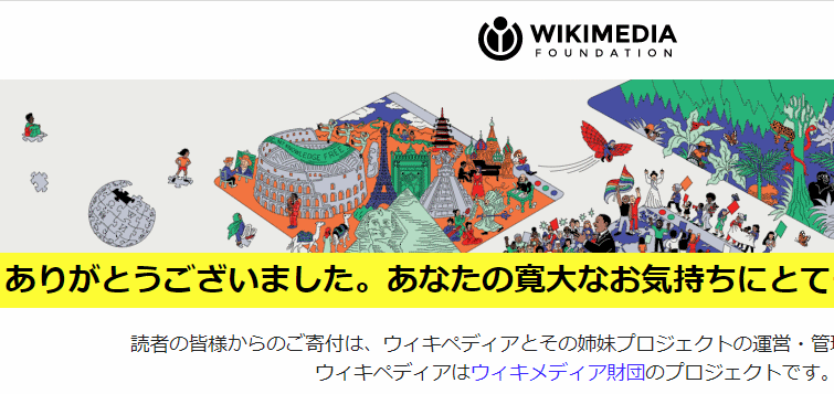 朝 TVを見ていたら、ローカル情報番組で「飯田の雲彩寺の彼岸しだれ桜が開花した」と伝えていた。飯田は出身地とはいっても菩提寺以外の寺院の事などとんと記憶に無いので「雲彩寺?はて?」と Webで検索してみた。結果どうやら生家から 2Kmくらいしか離れていないし、市町村合併前には同じ「上郷村」で小中学校の通学範囲だから付近には小中学校の同級生が多くいた場所だと分かったが、更にその寺の説明に「西暦 650年 白雉の時代の創建」とあって「白雉? 何時代? 何て読むの?」と疑問が湧いて再び検索。「白雉」は「はくち」または「びゃくち」と読むと分かったが、聞いたことのない元号におぼろげに西暦600年頃としか記憶にない聖徳太子より前?後?と疑問は連鎖していく。そうこうするうちにたまたまリンクが Wikipediaのページに飛んだんだが、そこで「Wikipediaへの寄附のお願い」がポップアップした。同様のお願いは今まで何度も見て無視していたが、ここ数日で3~4回 Wikiにはお世話になったし、何より以前と比べて最近はこれみよがしのデザインだし、今日はよほど私も気分が良かったのか?何かの気まぐれか?「寄付」のボタンを押してしまった。そのクリック先で 一応こうした海外への送金にはカード番号などの入力の必要ない(とはいっても初回利用時に登録してあるんだが) Paypalで 1,000円を送金してみた。結果図のようなお礼が表示された。(ちなみに聖徳太子が摂政を務めた推古天皇の在位が 593~629年で、白雉は大化の改新の元号「大化」の後になると判明) 歴史を勉強として学んでいた頃はとんと興味がなかったのに元号を検索するとか、Wikiに寄付するとか・・・・これも歳のせい? | |
