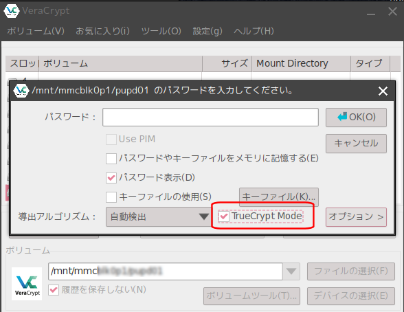 今回、思い出して再度探すと TrueCryptは脆弱性の問題から開発が中止されて、VeraCryptという後継のアプリになっているという。新しい VeraCryptにも従来の TrueCryptの暗号化ドライブをマウントできる互換モードが有るというが、残念なことに今回も Puppy用の sfsや petなどのインストールファイルが見つけられない(海外サイトにはそうした話題のスレッドがあって、その中にはリンクもあるがどれもリンク切れしていた)。
