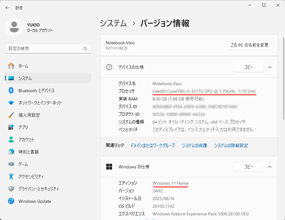 ここで書いた。この記事はサブで使っている デスクトップ機(CPUが Sandy bridge i7-2600k)についての記事だった。実は私はもう一台モバイル用途の Note PCがある。こちらは CPUが少しだけ新しい i5-3117U (Ivy bridge) だが、こちらも Microsoftにはアップグレードを拒否されている。こちらも常用はデュアルブートで Linuxの Puppyが起動するのでアップグレードは諦めていたが、プリインストールの Word/Excel とか PaintShopなどはたまに使うし、まぁ出来るなら延命させておいた方がいいと思って昨日チャレンジしてみた。そこで上記デスクトップ機(元は Windows10 Pro)のアップグレードに使った Flyoobeと 24H2のダウンロードファイルを使って始めた。