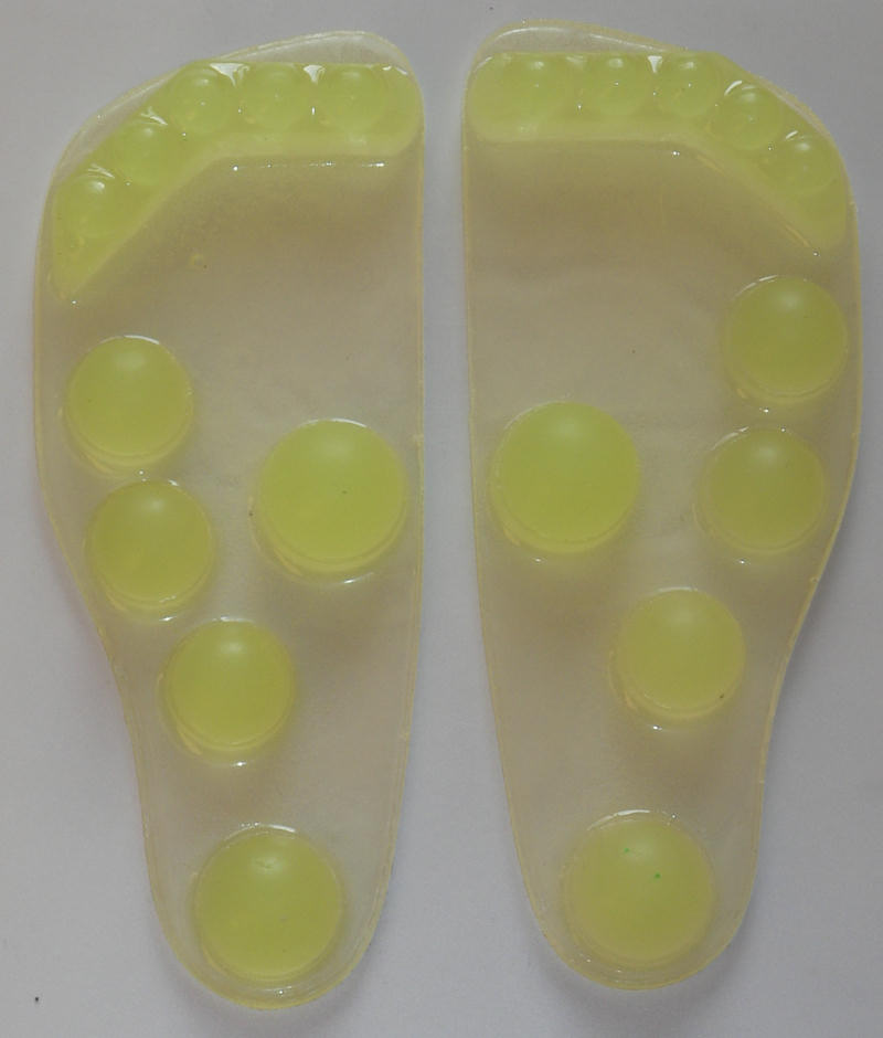 シリコン型で成型足踏み器が成型できるようになったが、元の型はいかにも粘土細工然とした形で、樹脂の強度確認と足踏みの感覚の確認という位置づけだった。そのため凸部の周りなどに厚みをもたせたりしており、樹脂の使用量も左右で 450gほどと超弩級の雰囲気。