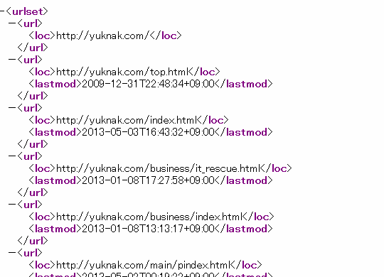 Googleなどの検索エンジンで、ワードを入力して検索すると色々なページが表示される。ありふれた単語なら数万ページ表示されることもザラ。ということは、その最初の方にリストされない限り検索エンジンからクリックしてもらうことは絶望的。オマケにどこかの有力ページからのリンクもなければ、折角作ったページがインターネットの海に埋もれてしまう。そうならないように、出来れば検索エンジンの表示優先順位を上げたい。そうした順位を上げるために、最低限必要とされているのがそうした検索エンジンが自動で巡回してページの情報を収集しやすくするための情報をリストした「サイトマップ」と呼ばれるリストファイル。検索エンジンが自動で巡回してページをチェックするのにページの全体を読み込んでリンクを探して・・・・という手間をかけずに、このサイトマップだけを読みこめば、サイト内の全てのページ情報が得られるので「検索エンジン受けが良くなる」という仕組みだろうか。このサイトマップは「XML」という決められた書式で記述してあることが必要だが、とっつきづらいタグなどをページごとに記述する必要があり手間がかかる。Webには自動でこのサイトマップを生成してくれるサービスもあったりする。だが、毎日更新するページなどがあったりすると、毎回この Webサービスで作成してアップし直すなんて面倒で実際には一度アップしたきり放置ということもあると思う。私も御多分にもれず、最初はこうしたWebサービスで作成し、その後はHPを新規 or 書き換えたりする度にマニュアルでXML ファイルを書き換えてアップしていたが、どうしてもこちらは滞る。