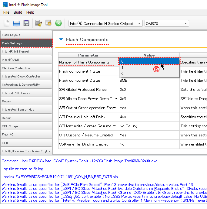 まず専用ツール(Fit.exe)を使用してエンジンファームウェア(CSME)と PMCファームウェアを結合したイメージファイルを作成しておいて、それをFWUpdateツールを使用して、ターゲットPCにフラッシュするのだ」と教えられた。(win-raid.com に感謝!)