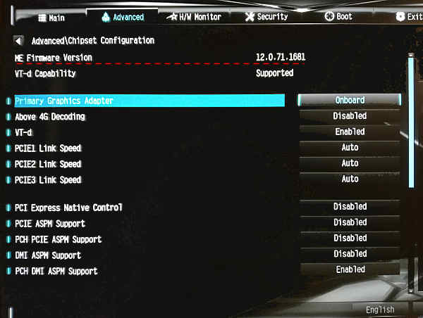指示通り リブートして UEFI設定画面を開いて、ME Firmware Version を確認すると意図したバージョンに更新されているのが確認できる。
