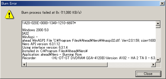 DVD Shrinkを使ってDVD-Rに DVDのコピーをしようとすると結構な確率で書込みエラーになってしまうことがある。どうも Lead-inという一番内周部分のテスト書込みのような部分で十分な信号強度で書込みが行えないようで、書込み用のディスクを挿入して、プログレスバーが 2-3%のところで必ずエラーになる。4%を越えた場合はエラーになったことはない。Imation のディスクでは80%位の確率でエラーを起こしたので、海外ブランドには懲りてその後は「高品質」と評判の太陽誘電(だったかな?間違ったらゴメンナサイ!)のディスクを購入したが、購入当初は良かったものの、買ってから1年ほど経った最近、やっぱり 2割くらいがエラーを起こすようになった。もちろん、私の使っている 日立・LG製のドライブとの相性もあるのだろうが、私の場合、2台あるデスクトップが2台とも LG製でどちらも同じようにエラーを起こす。