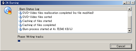 下図のように、書込みフェーズが「Writing tracks」まで行けばいいのだが