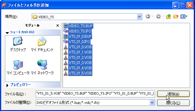 <Shiftキー>を押しながら左クリックして生成された全てのファイルを選択して<追加ボタン>を押す。