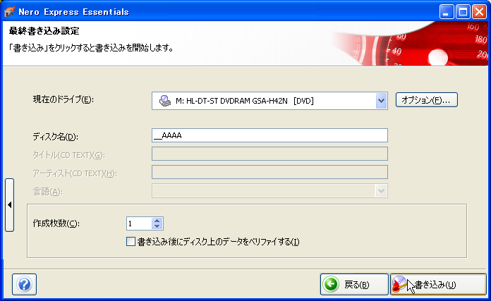 以降書込みは 最初から Neroを立ち上げることにする。