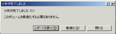 2. バックアップをとる Part2: バックアップ方法 (以下、画面は Windows2000 の例を示しますが、他のO/Sでもほとんど同じです。) Ⅰ.Drive Image の場合 HD革命/BackUp の場合はこちら まず、Drive Image をインストールします。 これは、マニュアルに従ってインストールを実行します。 あるいは、3枚構成の 実行FDを作成してあればこれを FDに挿入して PCの電源をONすることで、実行できます。 インストールしても、すぐに Drive Image を実行しないで、a.の ディスクのクリーンアップとデフラグ(ファイルの配置の最適化)が終わった後で b. のドライブイメージの作成に進みます。 a. バックアップをとる前に、忘れがちですが、まず 不要なファイルなどの 整理と、ディスクの最適化をしておきます。 例えば、ソフトウェアのインストールをした場合に、一時的に生成される ファイルや、インターネットの Cache File などは、多くの場合 ドライブを 無駄に使います。 <クリーンアップ> 一般的には、デスクトップの「My Computer」 から 「C: ドライブ」を選んで(①)、 「ファイル」メニューから「プロパティ」画面を表示する(②)と 「ディスクのクリーンアップボタン」が見えますので、これを押して不要なファイルの 整理を行います。 あるいは、「Control Panel」 ⇒ 「インターネットオプション」 ⇒ 「全般タグ」 ⇒ 「インターネット一時ファイル」 の中の 「ファイルの削除」ボタンと 「Cookieの削除」ボタンでインターネットエクスプローラが使用するテンポラリファイルとクッキーを削除します。 その他、 \Windows\Temp などのテンポラリフォルダ内のファイルを 削除します。 また、長く使ったドライブは、 よくアクセスされるファイルが断片化したり、 大きなファイルを書き込む場合に不連続領域に書き込むため アクセススピードが低下していることがあります。 せっかく バックアップをとって何時でもリカバリーできる状況を作るのですから イメージファイルをバックアップする前にディスククリーンアップと デフラグを一度実行しておけば、その後、このバックアップファイルから イメージを書き戻す場合に不要なファイルの削除と最適化がされた状態で復元されます。 <最適化> 一般的には、クリーンアップと同様に、「My Computer」から 「C:ドライブ」を選んで 「ファイル」メニューから「プロパティ」画面を表示しておいて、「ツール」タブの一番下の 「最適化する」ボタンを押してデフラグを行います。 「最適化する」ボタンを押すと、断片化を分析する「分析ボタン」と いきなりデフラグを実行する「最適化」ボタンが表示されます。 一応、「分析」ボタンを押すと断片化の程度が表示され、その必要があるかどうかが 表示されます。「必要ありません」となっていても、デフラグ作業は可能です。 ドライブの使用容量や断片化の程度によりますが 1時間くらいは覚悟してください。 b. Drive Image を実行します。 Drive Image 本体は 現時点では DOS上で実行されるプログラムです。 通常使用している O/S のWindows では、外部ドライブが簡単に使えますが、 DOSでは内臓HDD以外のドライブを使用するには、起動時に実行される Config.sys ファイルにドライバを登録しなければ外部装置が使えません。 このドライバの登録は PCの環境や使用ドライブの種類に合わせた 設定をマニュアルで行わなければならず非常に大変です。 特に Note PCの場合は、DOS環境で外部ドライブを使用するためには、 通常、まず PCMCIAのドライバやイネーブラを登録し、その上にSCSIなどの I/Fカードのドライバを登録するなどの手順が必要で、組み合わせの種類が 膨大になることもあり、カットアンドトライを繰返して確認し始めると あっという間に半日くらい過ぎてしまいます。 これを避けるには、まず 現在使用している HDD に C: ドライブとは 別にパーティションが作ってあって(D: ドライブなど)そこに ドライブイメージを保存する十分な空き容量があることが必要です。 例えば、 C: ドライブが 2GB の容量のうち、 1.3GBを使用しており D: ドライブがあったとすると、ドライブイメージを 圧縮して作成した として、 1.3×0.7 = 約 900MB の空き容量が D: ドライブに 必要です。 Drive Image が HDDにインストールしてなく、実行用のFDD が ある場合は 1枚目のディスクを挿入して電源をONして、 画面に > だけが 表示された場合は、2枚目を挿入して > PQDI とタイプしてリターンキー を押すと、実行されます。 c. 立ち上がると、 立ち上がり画面が出ます。 ここでは、 一番上のボタン 「イメージの作成(C)」 を選択します。 d. すると、次に ドライブの選択画面が表示されます。 通常O/Sがインストールされているのは、「ドライブ1」ですからこれを選択します。 ドライブイメージを作成する元の パーティションの選択画面 が表示されます。 そこで、バックアップイメージを作りたいパーティションを選んで、チェックマークを 入れますが、今回の場合は まず、C: ドライブをマークします。