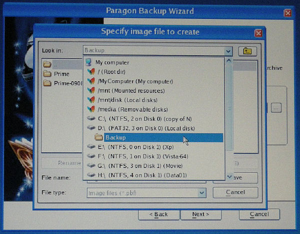 Windows版の方は、ディスク全体や同時に2つ以上のパーティションが選べるが、ディスクからの起動ではパーティション毎にしかバックアップできないようだ。