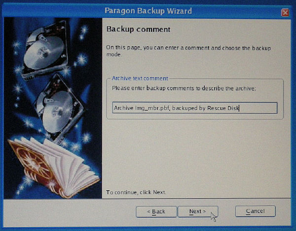 Windows版では見つからなかったが、こちらではコメントの入力欄が表示される。コメントは、Paragon Drive Backup の復元の際やアーカイブチェックで確認することが出来る。何回かバックアップを繰り返すと、違いが分からなくなるので、メモ程度のコメントを入力しておくといい。デフォルトではバックアップの作成日付が入るようになっているが、ファイル作成日付で確認できるので別の情報の方がいいと思われる。